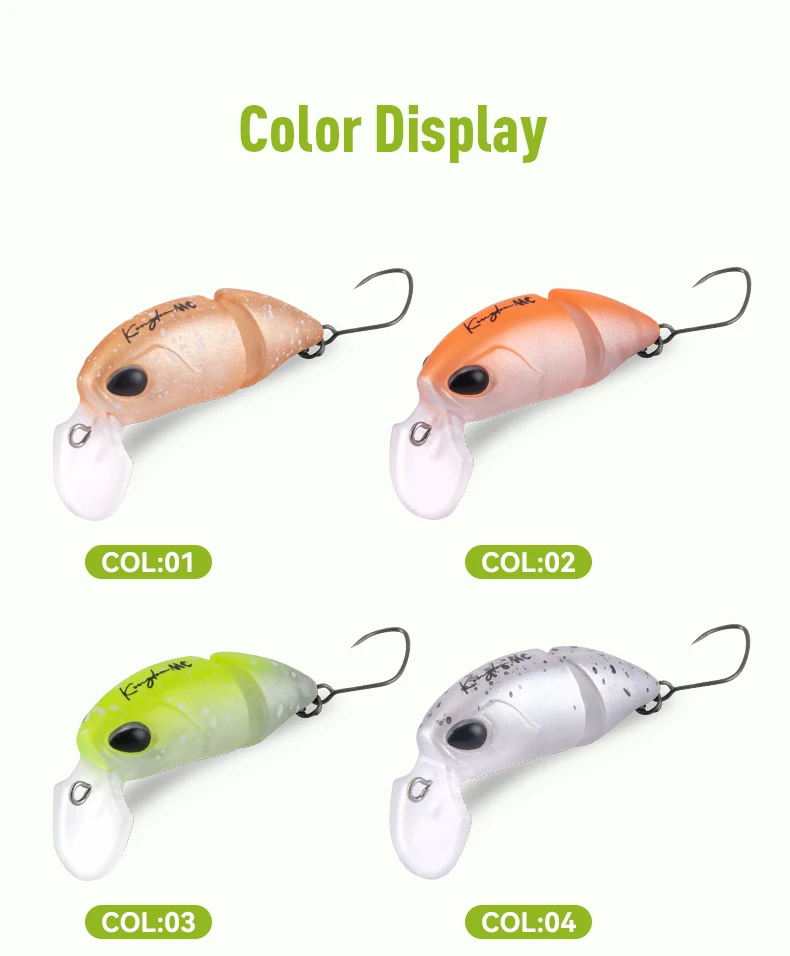 производител : KINGDOMразмер: 37ммтегло: 2.3г. тип: кранк Floatingкуки: единичницветове: на снимкитеподходящ за: кефал, ареа пътстърви, костур и др.